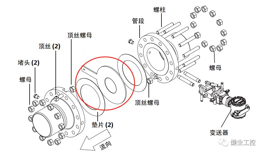 一個孔板流量計由三部分組成,即孔板、導壓管、差壓變送器。